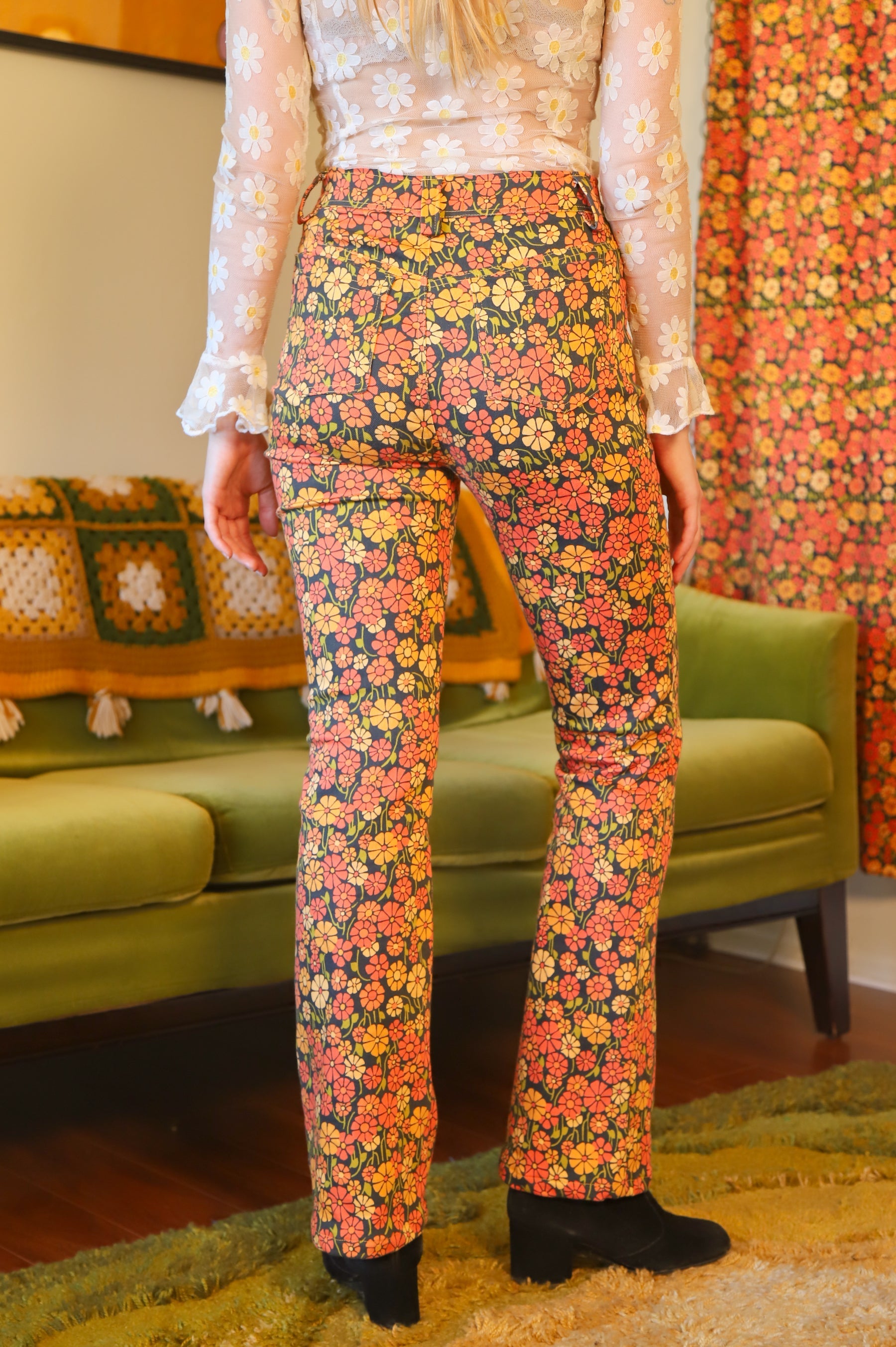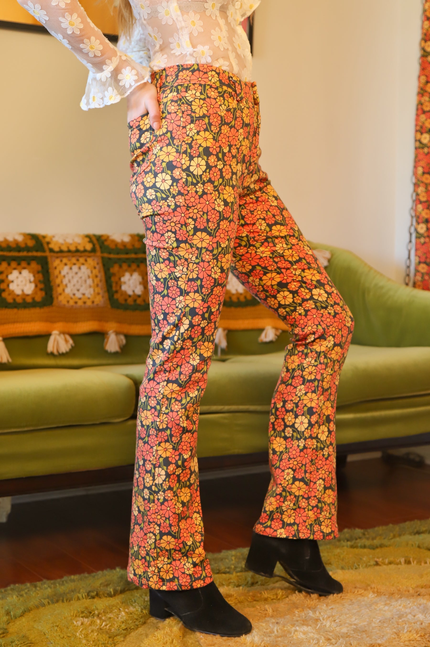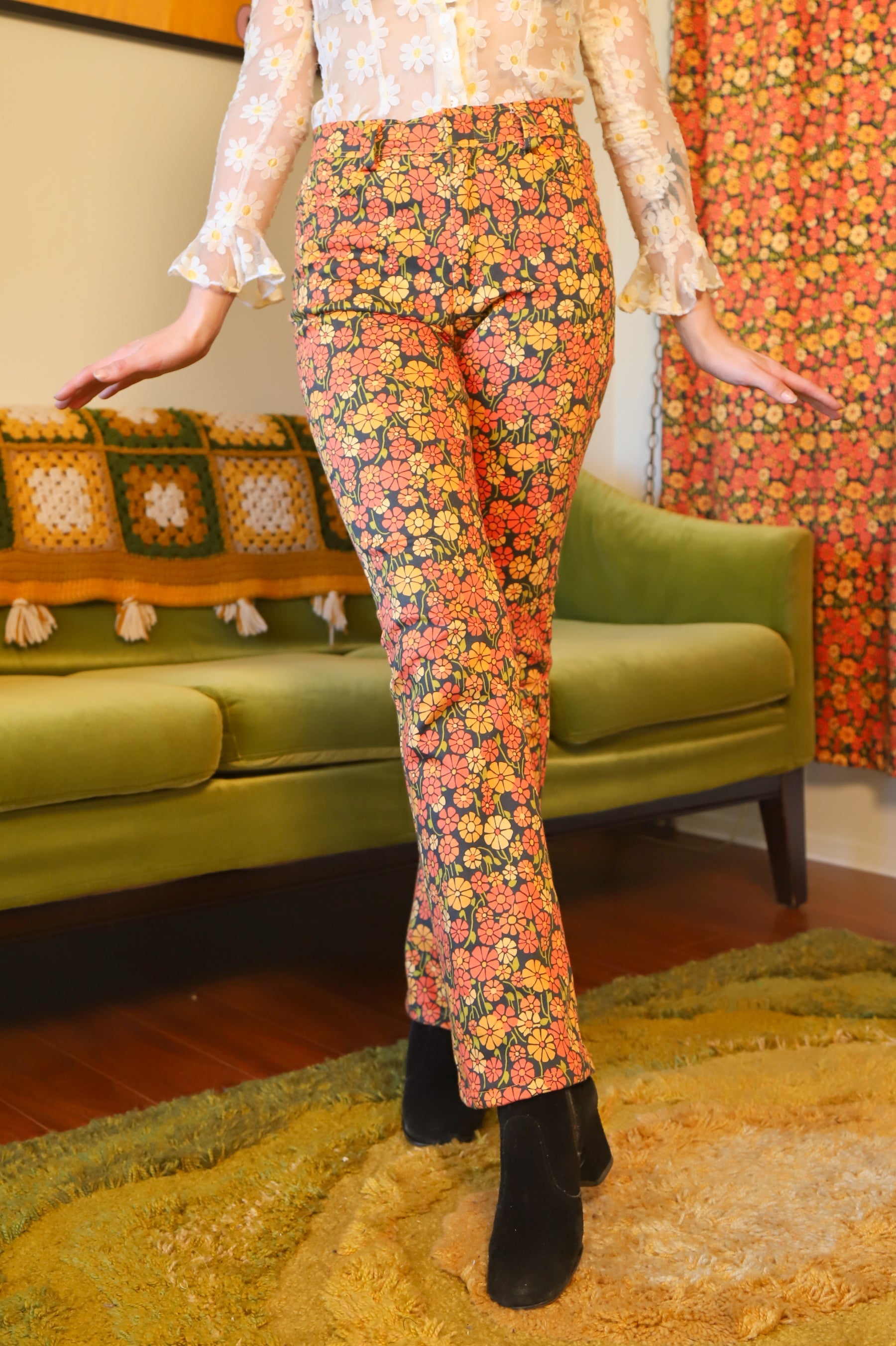 Our amazing in-house Miracle Eye Marigold fabric, in beautiful pant form! These babies are compliment machines! ✿