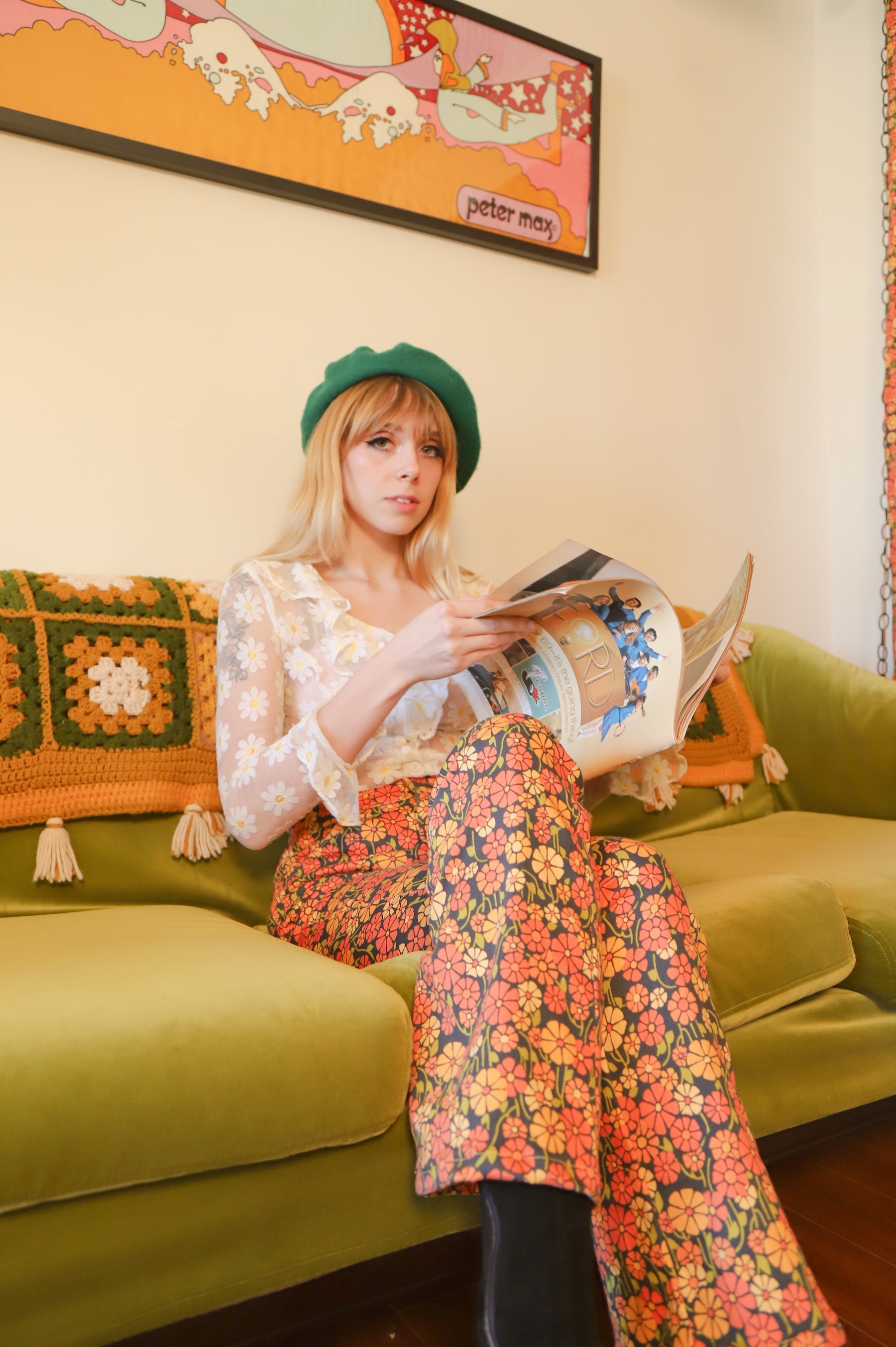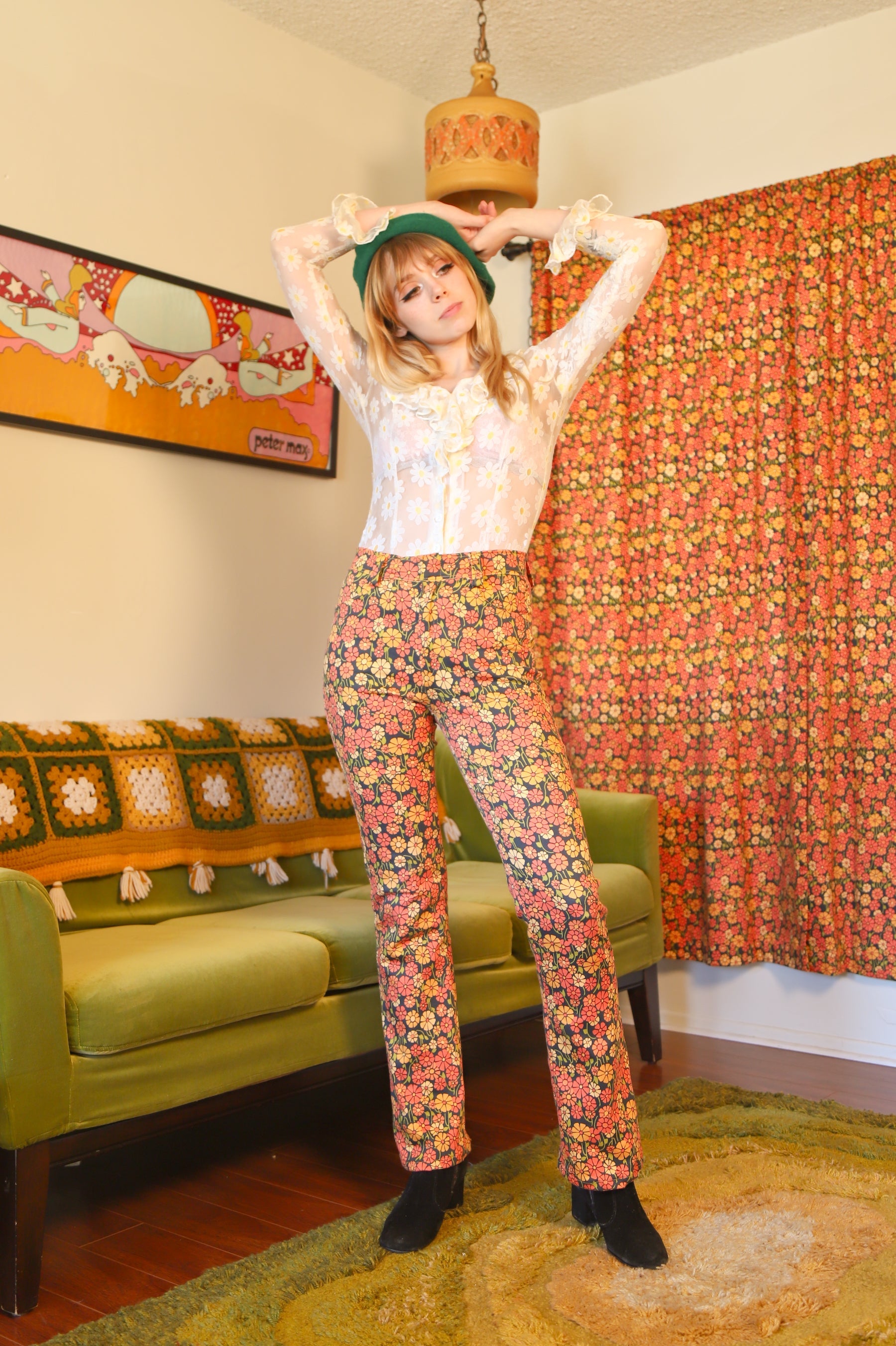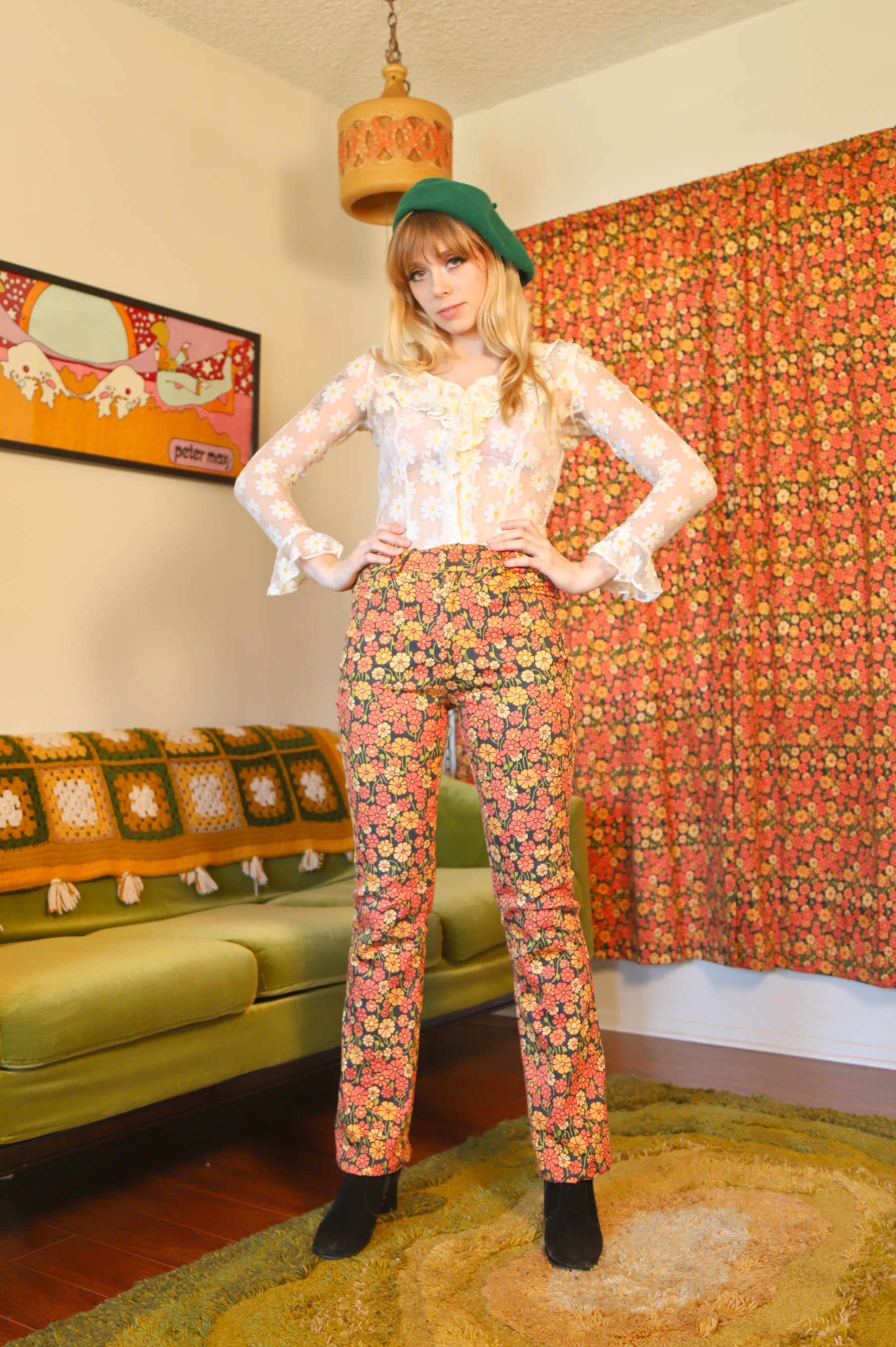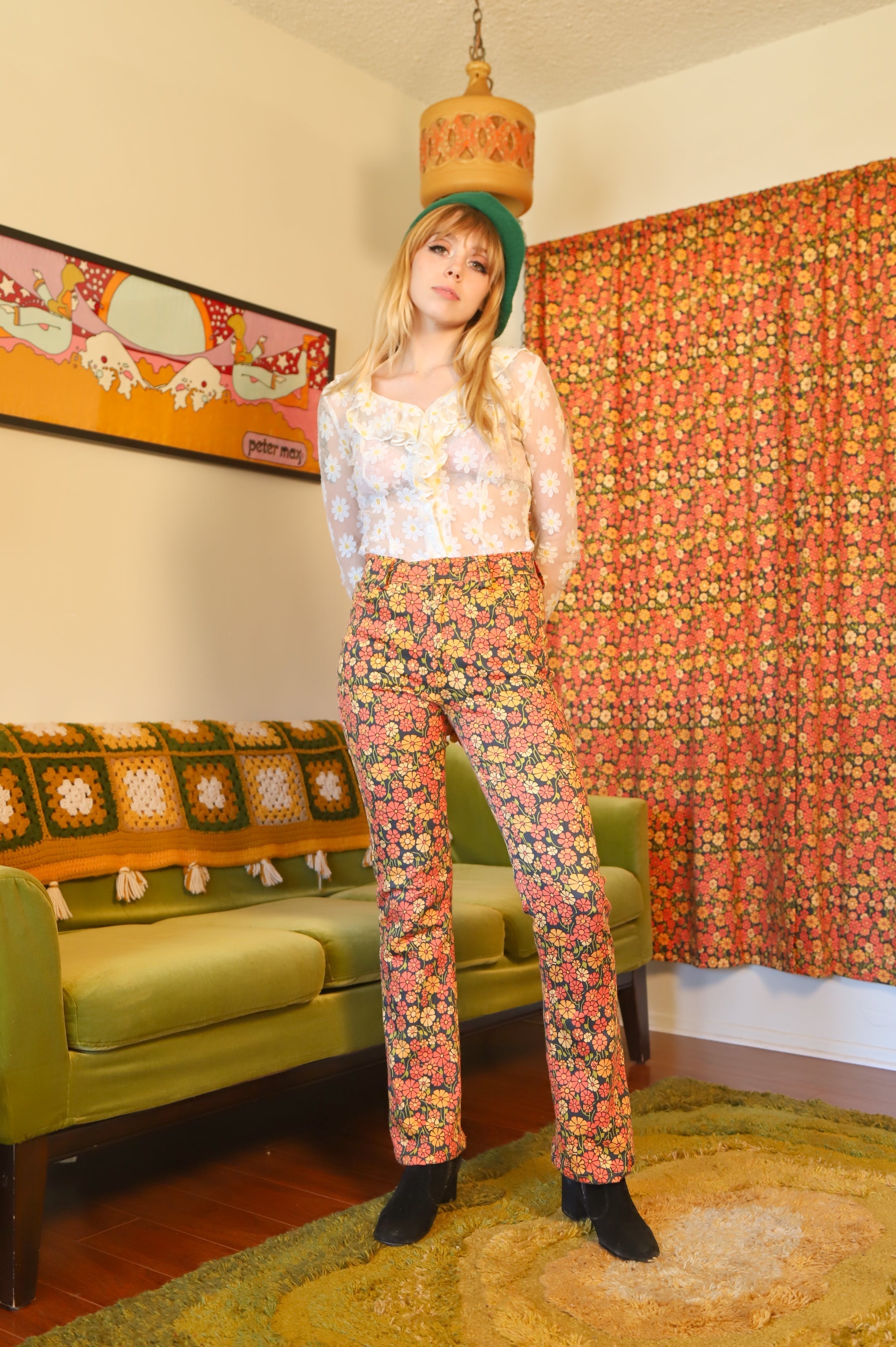 Our amazing in-house Miracle Eye Marigold fabric, in beautiful pant form! These babies are compliment machines! ✿