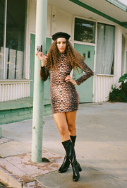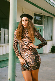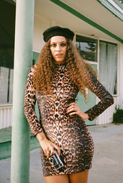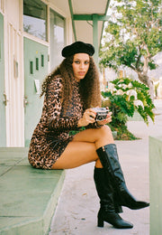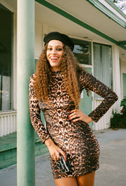 The Camille Long-Sleeve Mini-Dress is everything we've ever wanted in a statement mini! A coveted '70s-inspired cut in the perfect leopard print. Timeless.