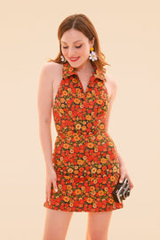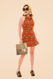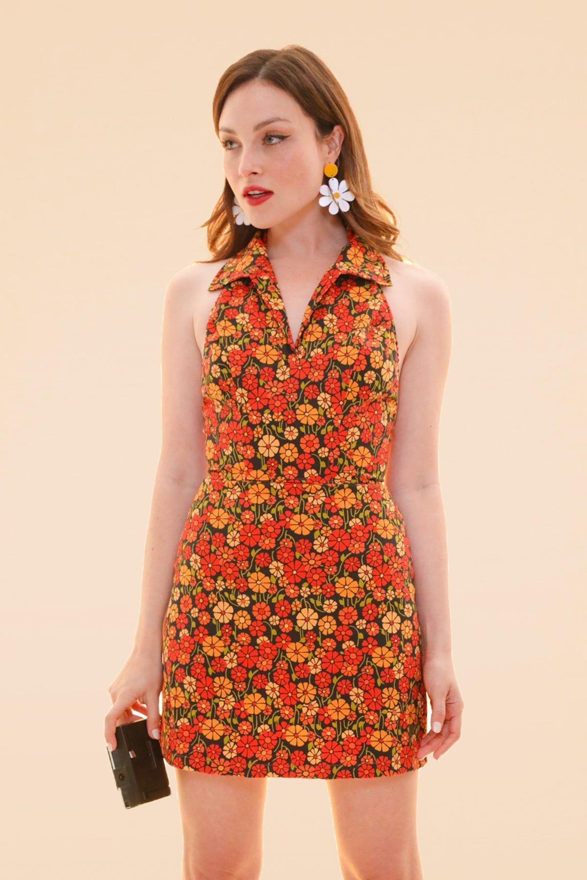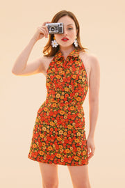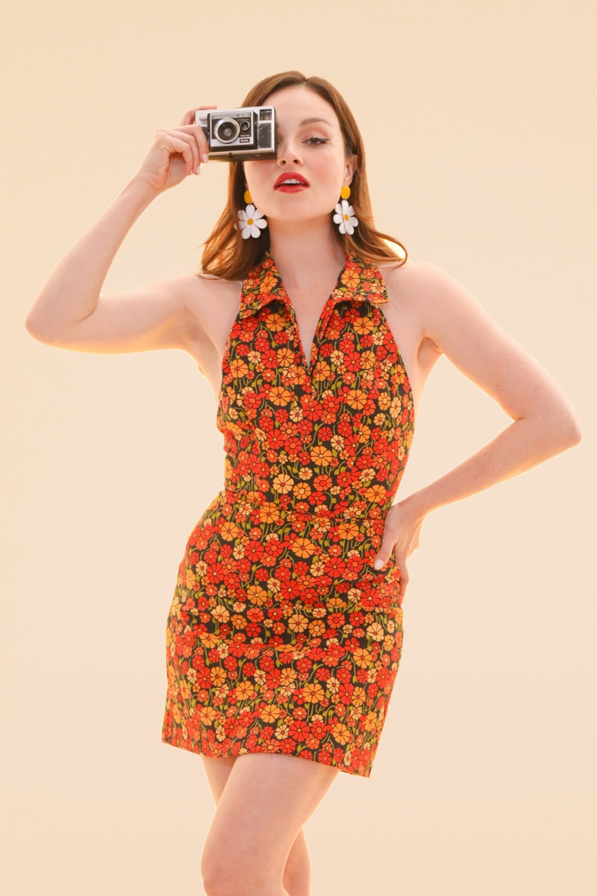 The Cecilia Mini-Dress is perfect for summer! It features a halter-style top and beautiful form-fitting silhouette throughout. Our coveted Marigold print is sunshine personified and the open back will keep you feeling easy breezy.