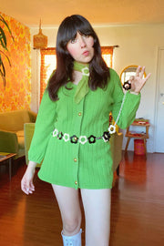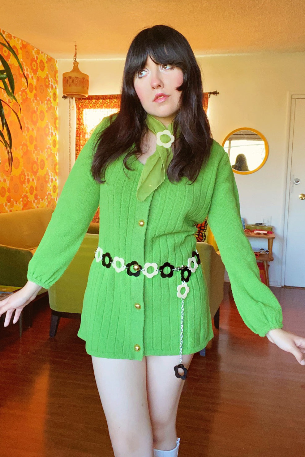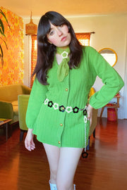 ❁ THE chain belt you've searched for all your life! Incredible 70's-inspired chain belt featuring a daisies in a dreamy cream & black hue! Pairs like a dream with form-fitting mini-dresses, suede skirts, bell bottoms - the possibilities are endless! Handmade with high-quality and durable acrylic. Adjustable chain belt length with extension at end with silver clasp. Lovingly handmade and designed by Ada Binks in England. ❁