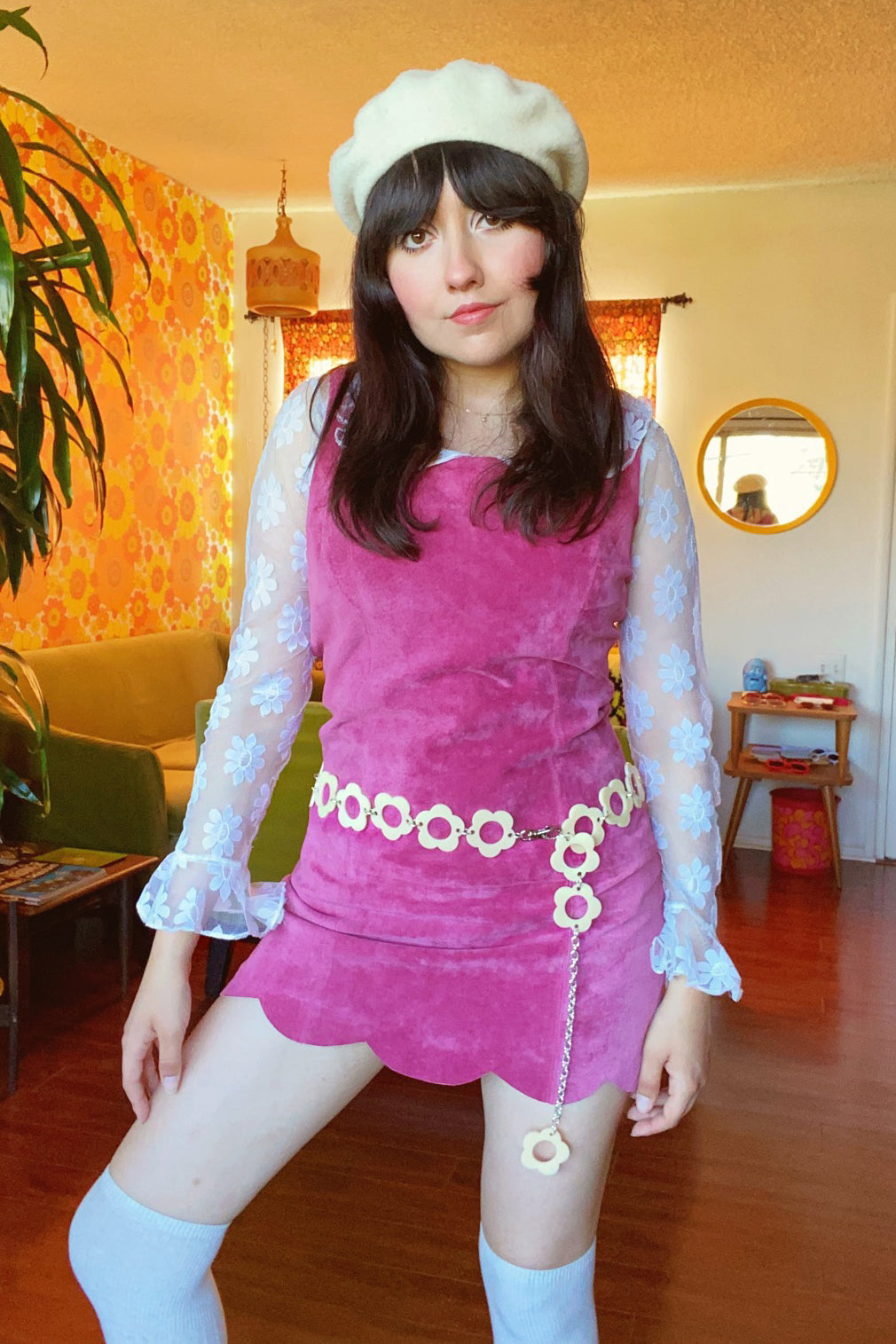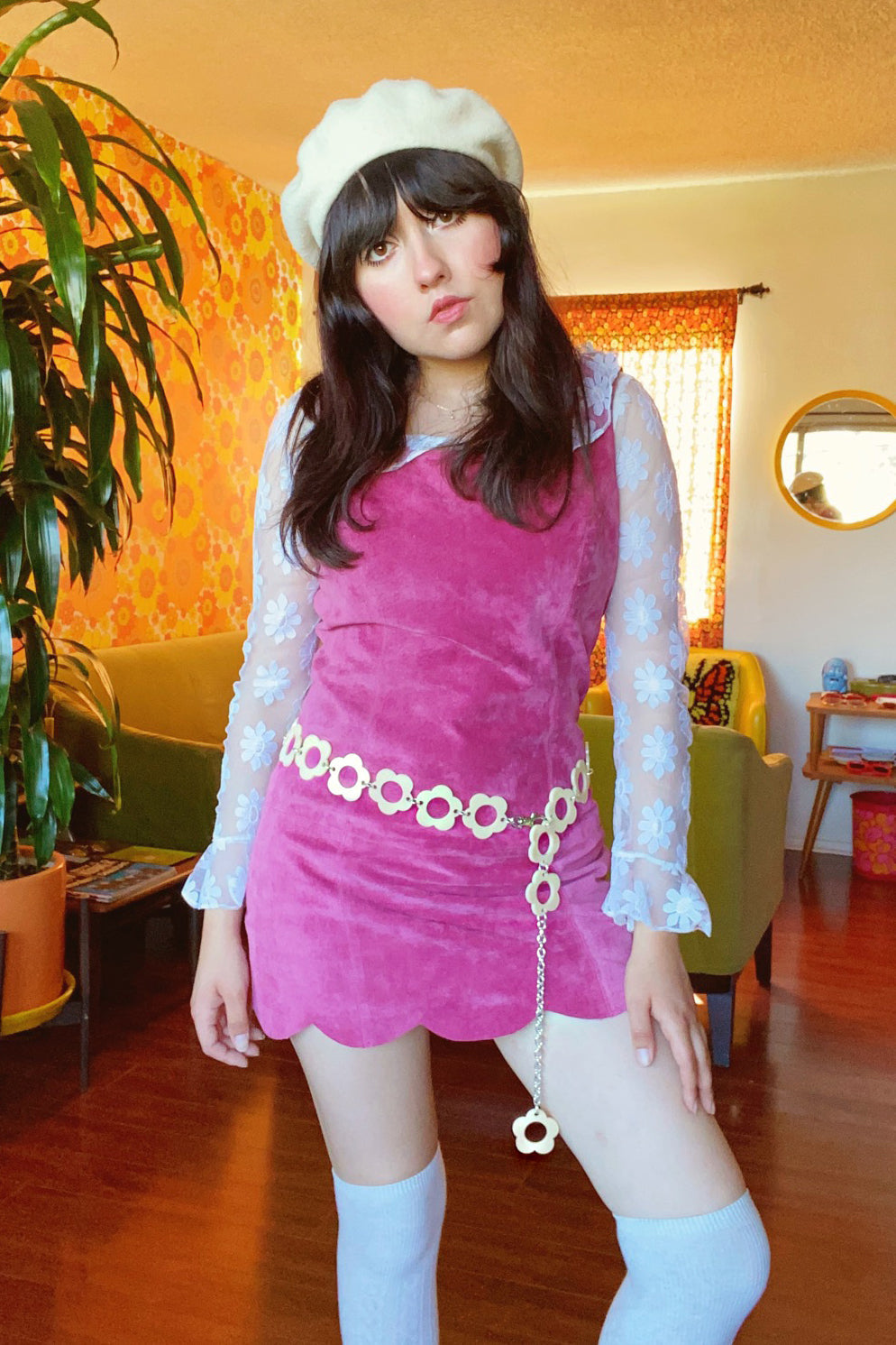 THE chain belt you've searched for all your life! Incredible 70's-inspired chain belt featuring a daisies in a dreamy cream hue! Pairs like a dream with form-fitting mini-dresses, suede skirts, bell bottoms - the possibilities are endless!