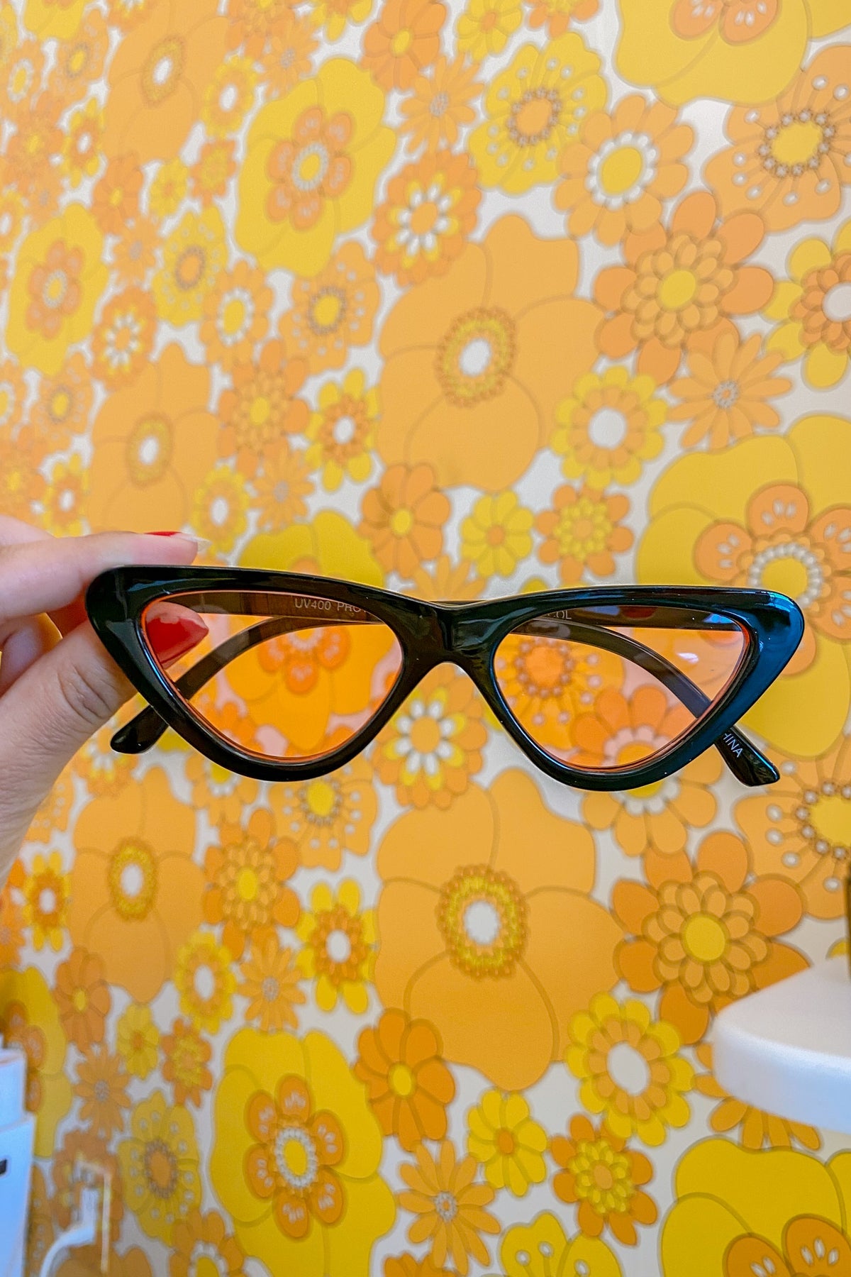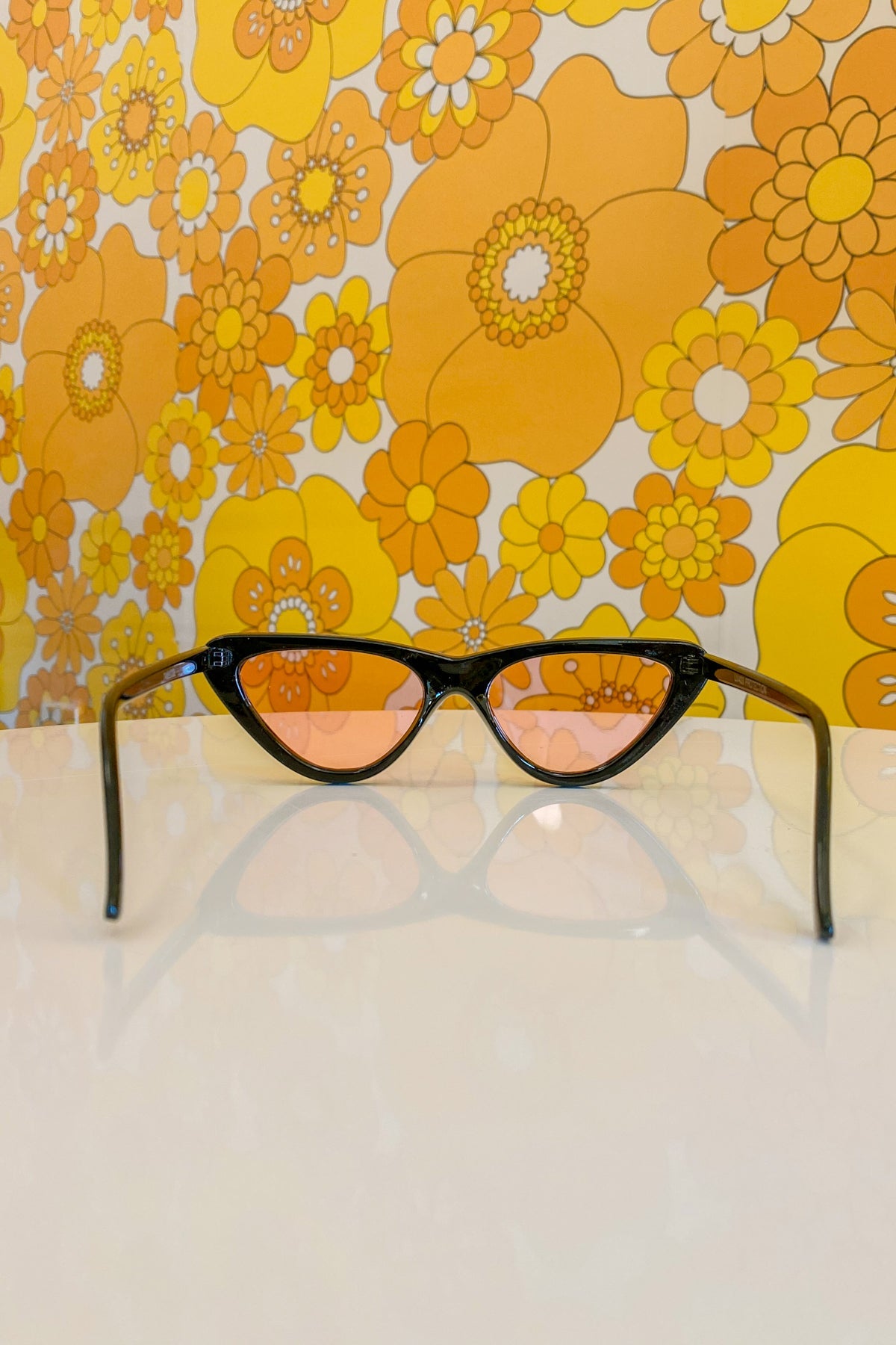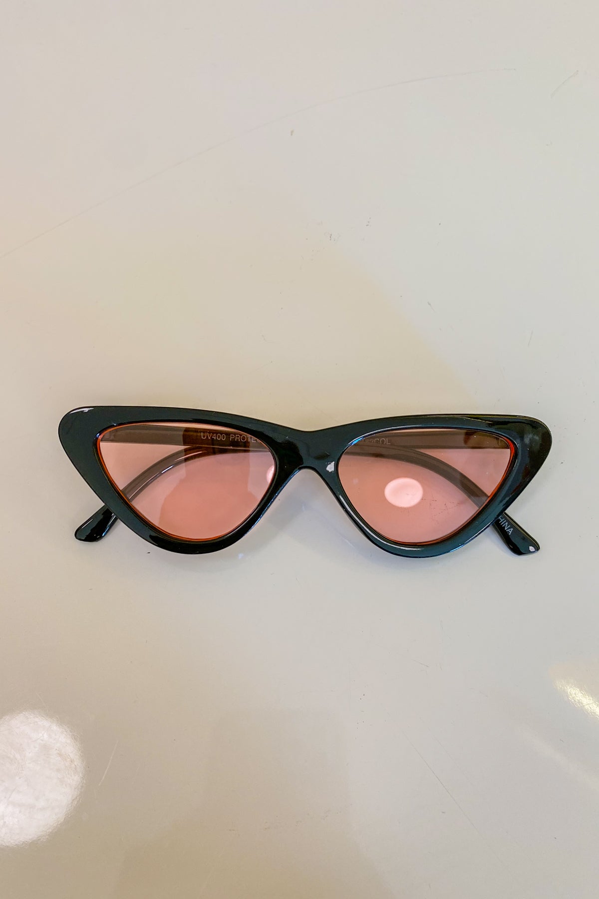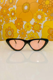 Vintage-inspired cat eye sunglasses featuring a pink lens and black frame! ✿