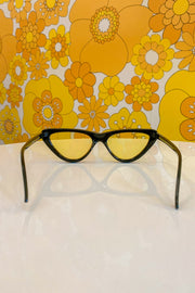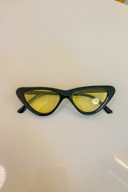 Vintage-inspired cat eye sunglasses featuring a yellow lens and black frame! ✿