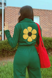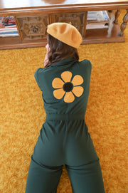 Flower is power! The Flower Power Jumpsuit combines a vintage-inspired cut with contemporary comfort. A groovy flower power appliqué on the back, a mini chest version, short sleeves, and dreamy details make this romper an effortless wear, day after day!