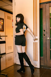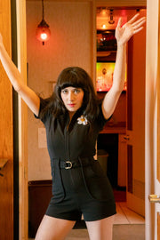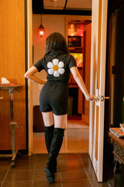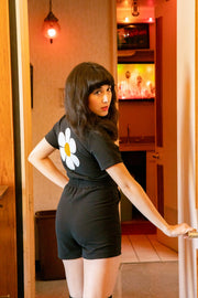 Flower is power! The Flower Power Romper combines a vintage-inspired cut with contemporary comfort. A groovy flower power appliqué on the back, a mini chest version, short sleeves, and dreamy details make this romper an effortless wear, day after day!