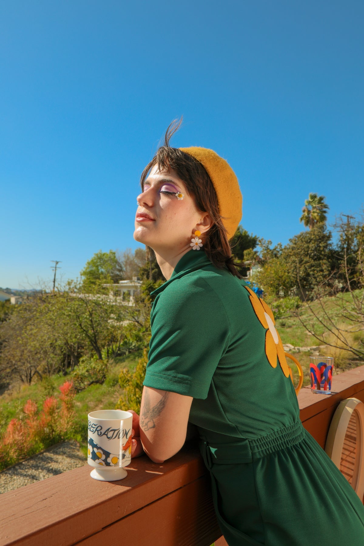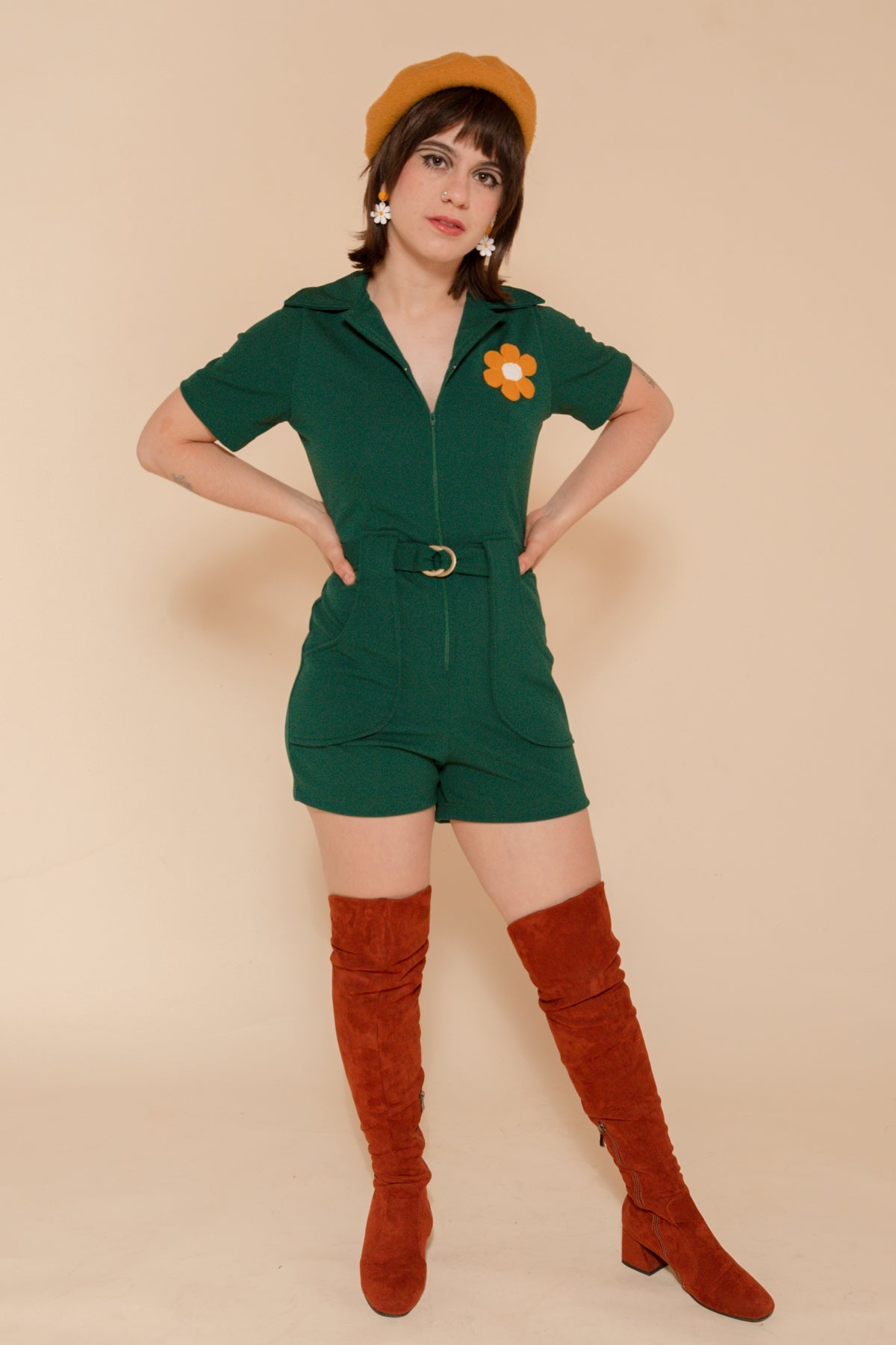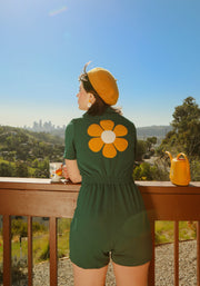 Flower is power! The Flower Power Romper combines a vintage-inspired cut with contemporary comfort. A groovy flower power appliqué on the back, a mini chest version, short sleeves, and dreamy details make this romper an effortless wear, day after day!