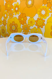 1960's inspired oversized mod sunglasses featuring a blue frame!