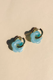 Gold Flower Hoop Earrings in Baby Blue