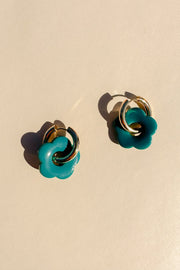 Beautiful and chic gold hoop earrings featuring a hanging resin daisy flower. Available in 10 colors.