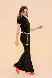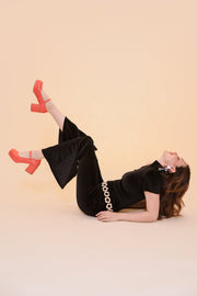 The Jagger Jumpsuit is a 1970's-inspired dream! It features a form-hugging cut with bell bottoms to dance the night away in. Simple, classic, timeless. Style it as your heart desires with infinite options to be worn up or down.