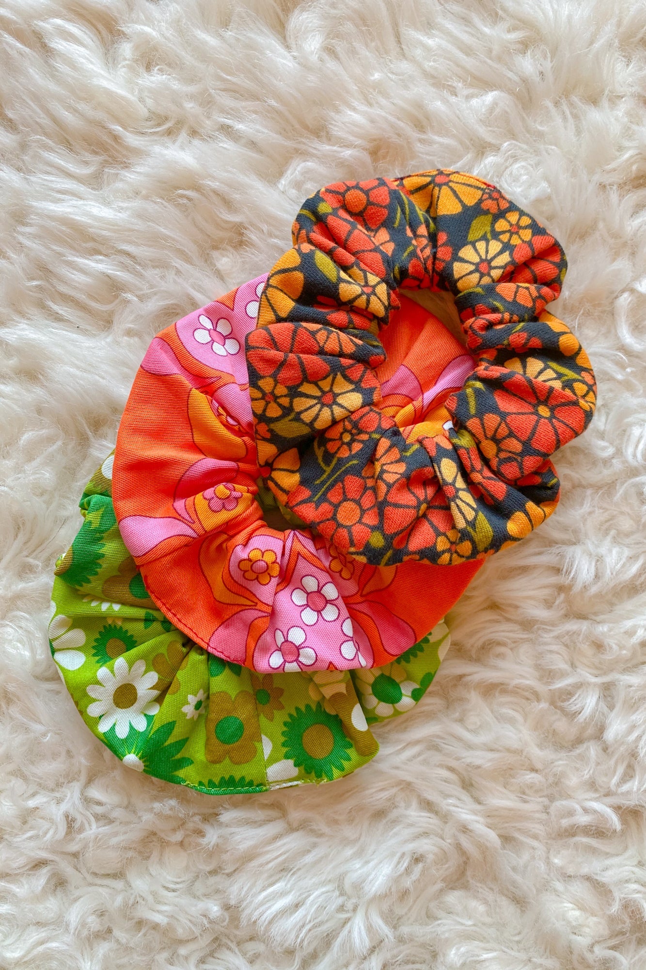 - Includes 1 Marigold, 1 Clementine Daisy, 1 Green Daisy Scrunchie = 3 total Scrunchies