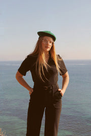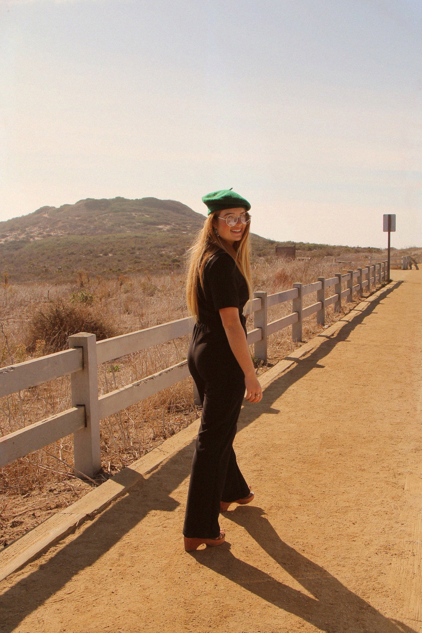 The California Shake Jumpsuit combines a vintage-inspired cut with contemporary comfort. It can be worn effortlessly, perfect for any day. Its short sleeves and dreamy detailing make this one-piece a must-have.