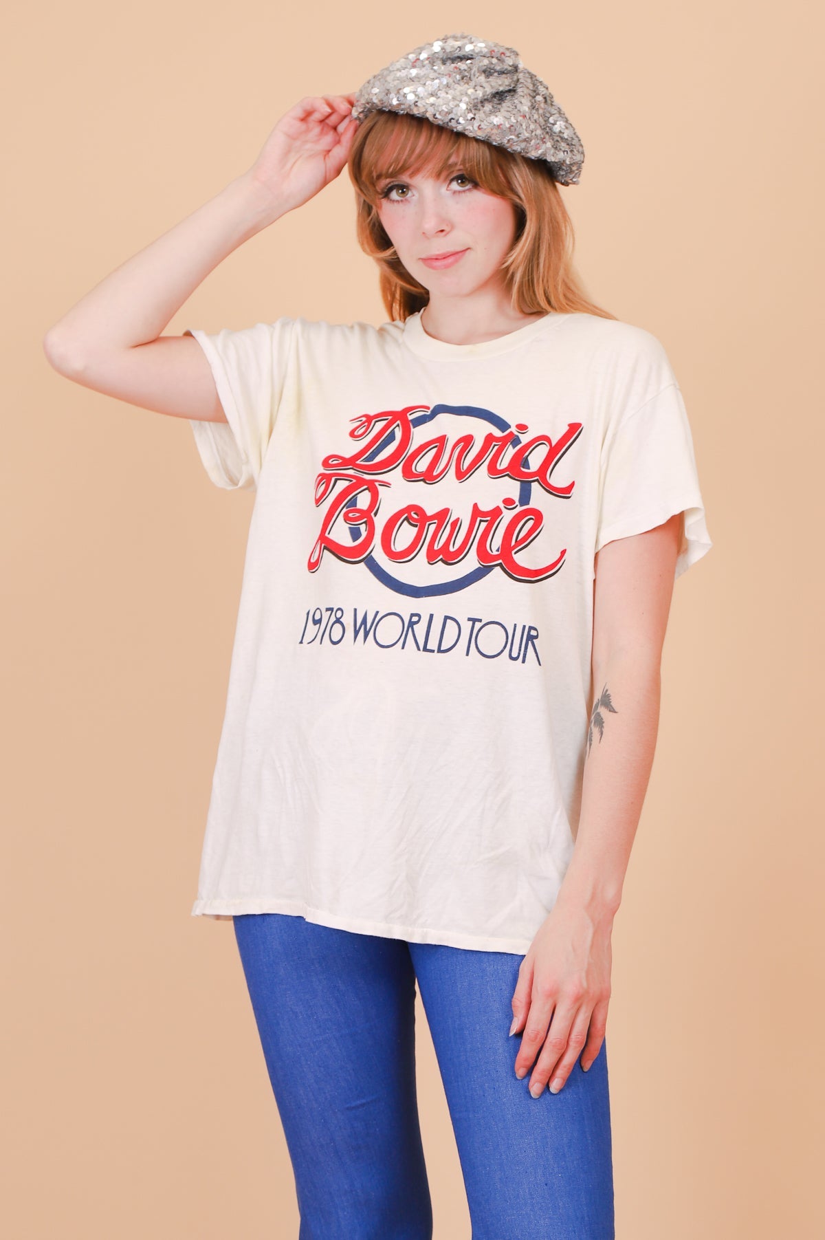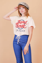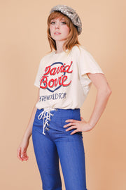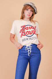 ❁ Spectacular vintage David Bowie Tee from his 1978 tour! Well-worn but in overall good condition, please review condition section below. Creamy ivory base with red and blue contrast ink. Relaxed fit. Ultra soft, comfy, and stretchy. So, so good! ❁