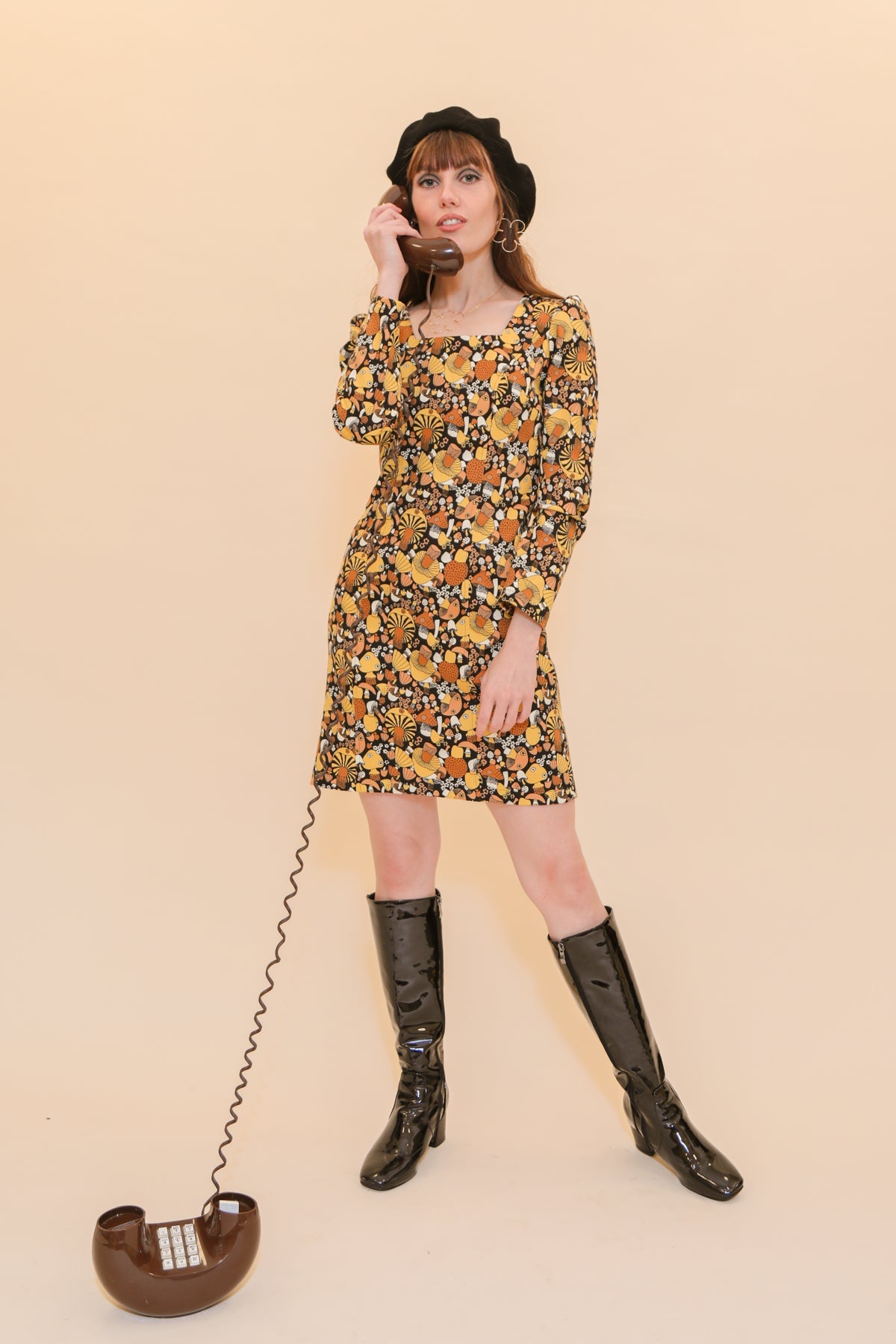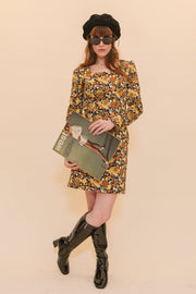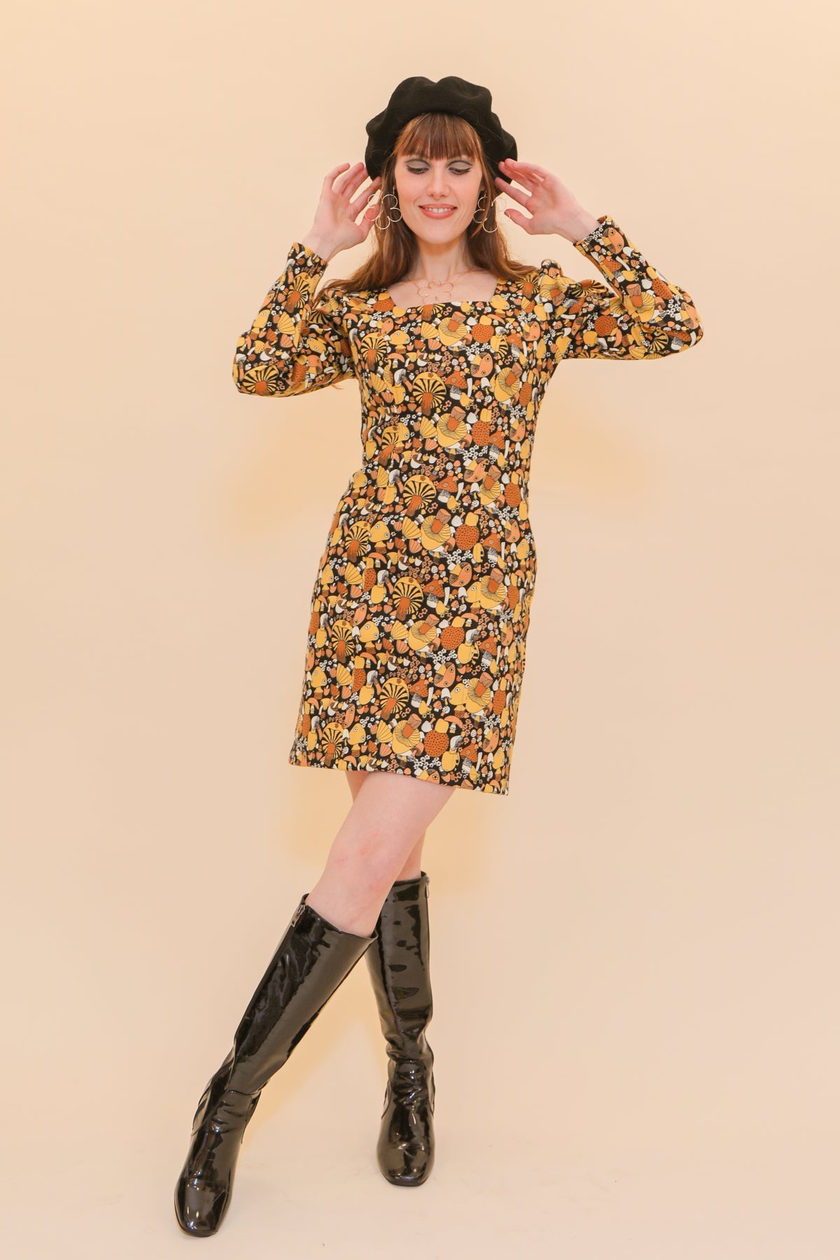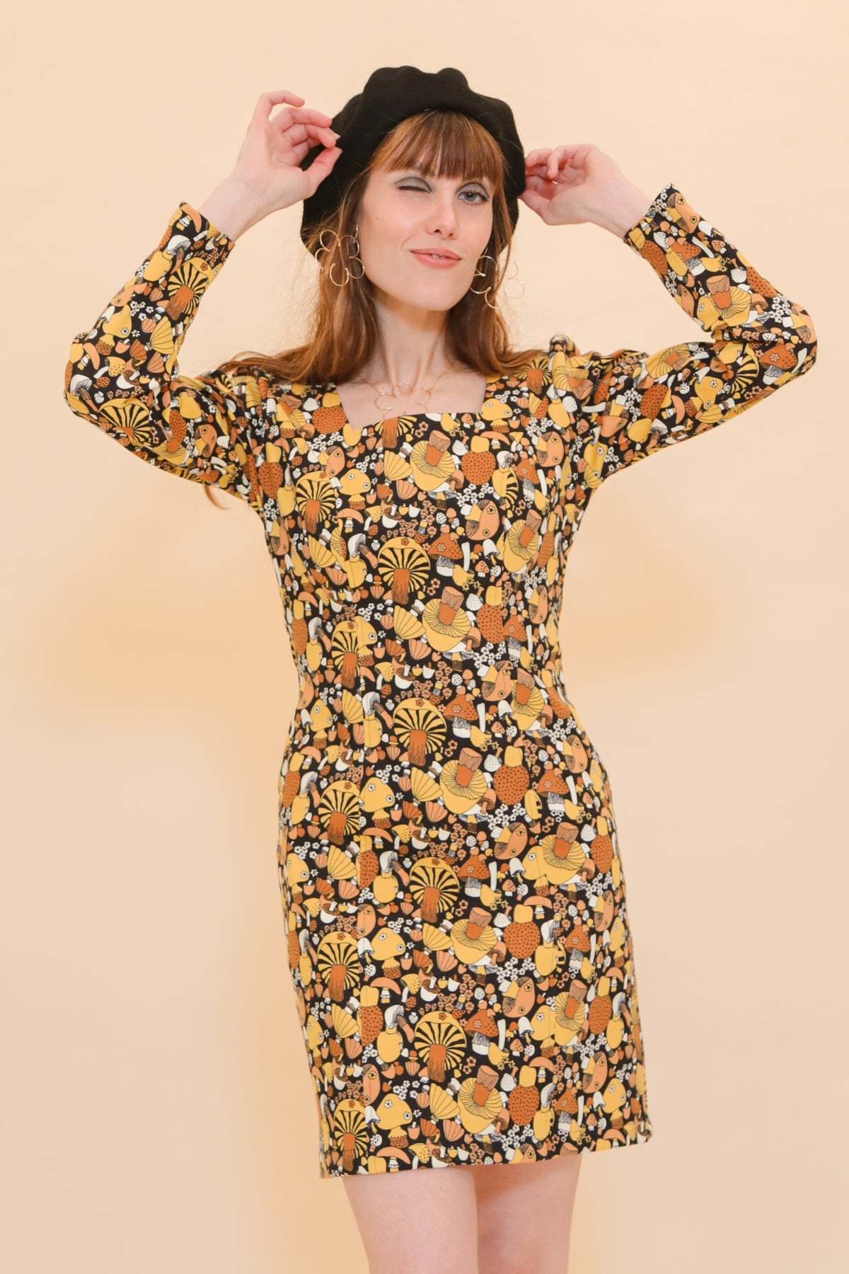 The Carla Mini-Dress combines elements of a cocktail mini with a classic 1960's design. Long-sleeves, a square neckline, and a figure-hugging cut provide a timelessly stylish look.