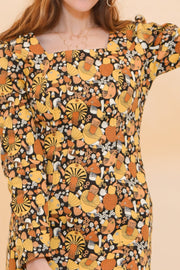 - Vintage-inspired square neckline