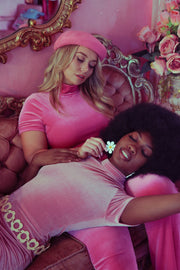- Fabric: Made with butter-soft stretch-velvet in a rosy blush pink 🌸
