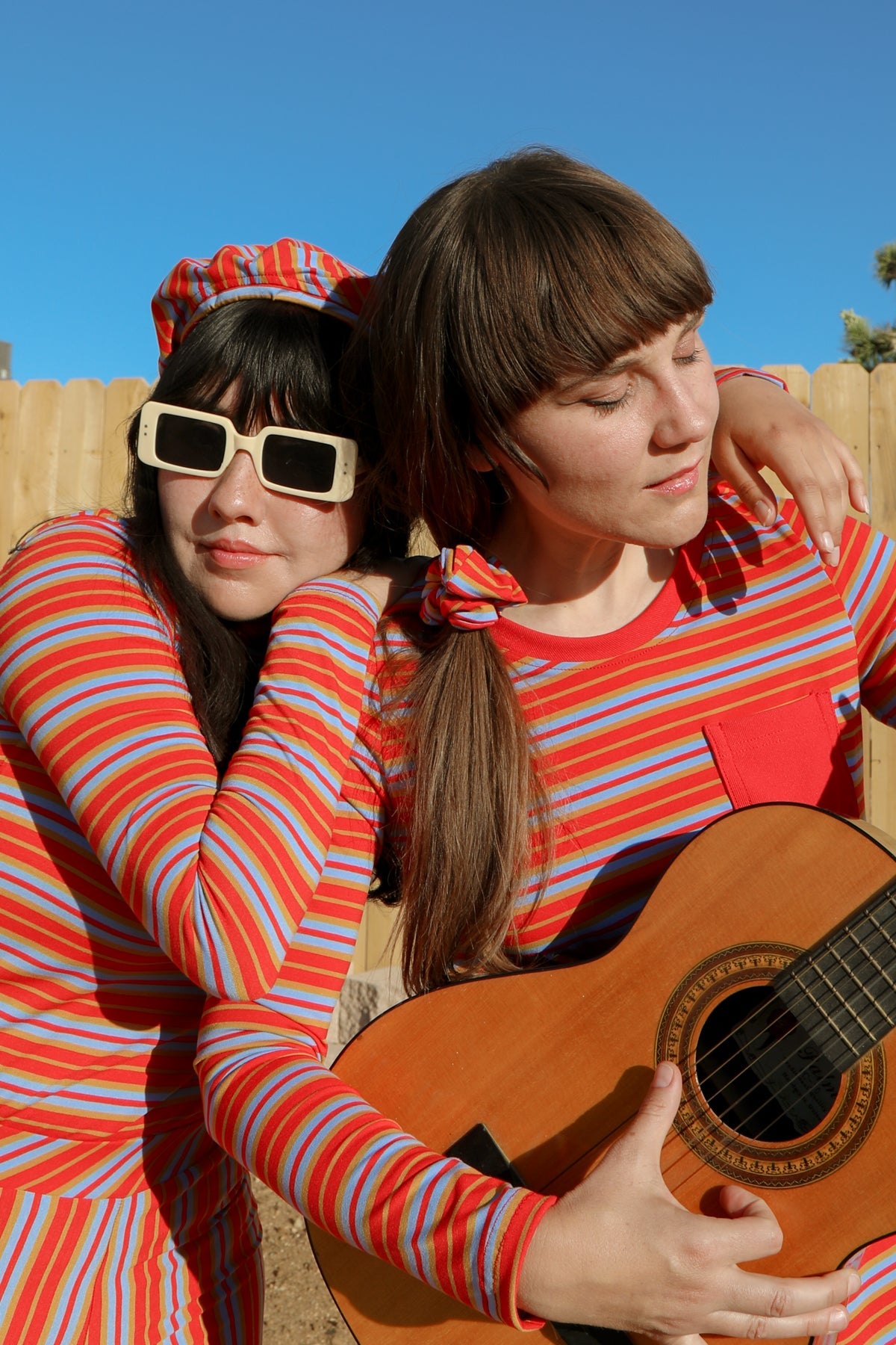 Lovingly & ethically handmade in Los Angeles by our family. We source top-quality materials and pride ourselves on our craftsmanship. We work with vintage deadstock recycled fabrics as much as possible to remain as sustainable & waste-free as we can.