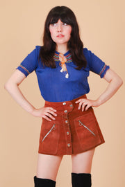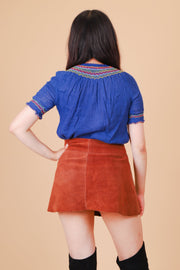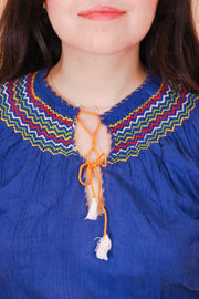 ❁ Beautiful vintage '60s Indian blouse that oozes all the Penny Lane vibes! Colorful embroidery essentials throughout with orange tie front keyhole on chest. Navy-blue hue. This is a vintage deadstock item that we acquired in a vintage warehouse in LA from 1967! It was never worn, still in its packaging. The real deal! Breezy and fresh cotton, perfect for summer. Ultra soft and comfy with some give. So enhanting! ❁