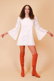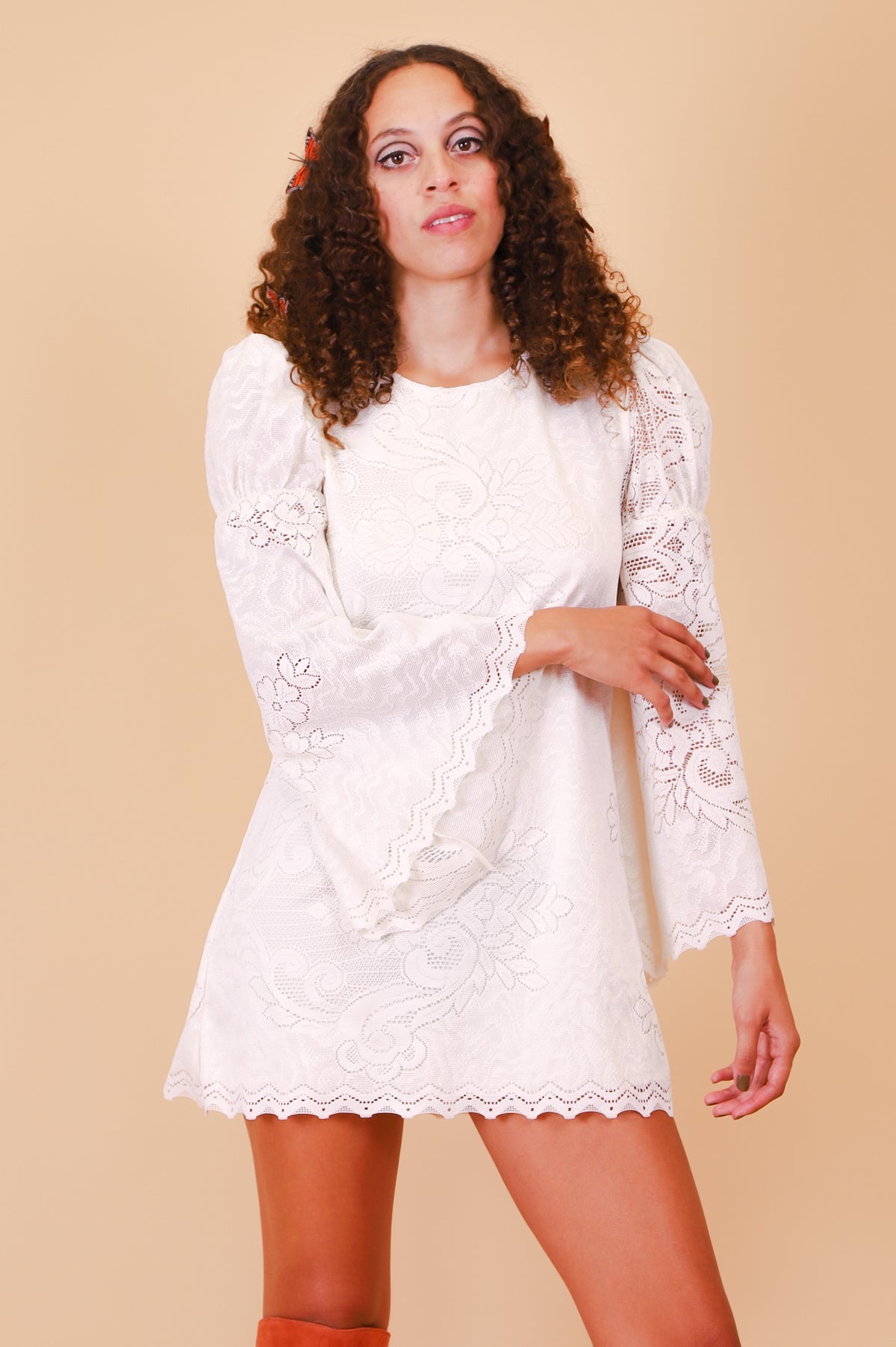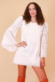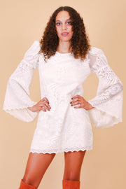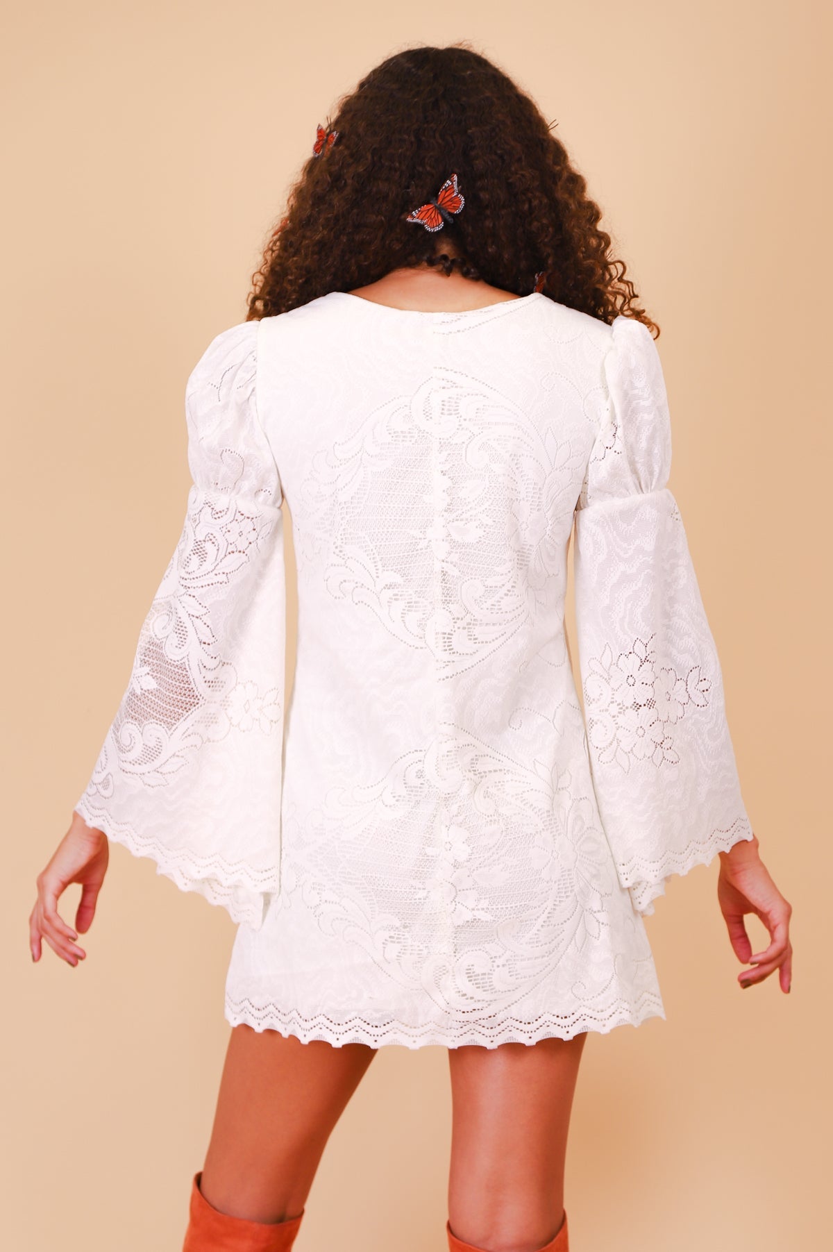 Vintage Sharon Lace Bell-Sleeve Mini-Dress