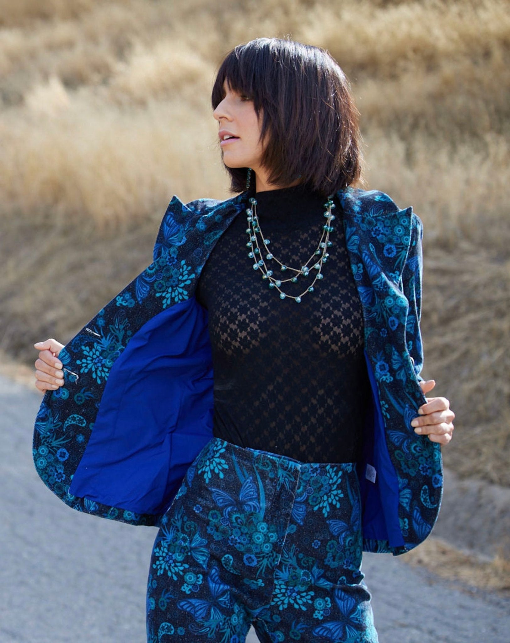 This Blazer is made of printed cotton stretch corduroy. This is my own exclusive print designed by the amazing artist, Amber Ellis.