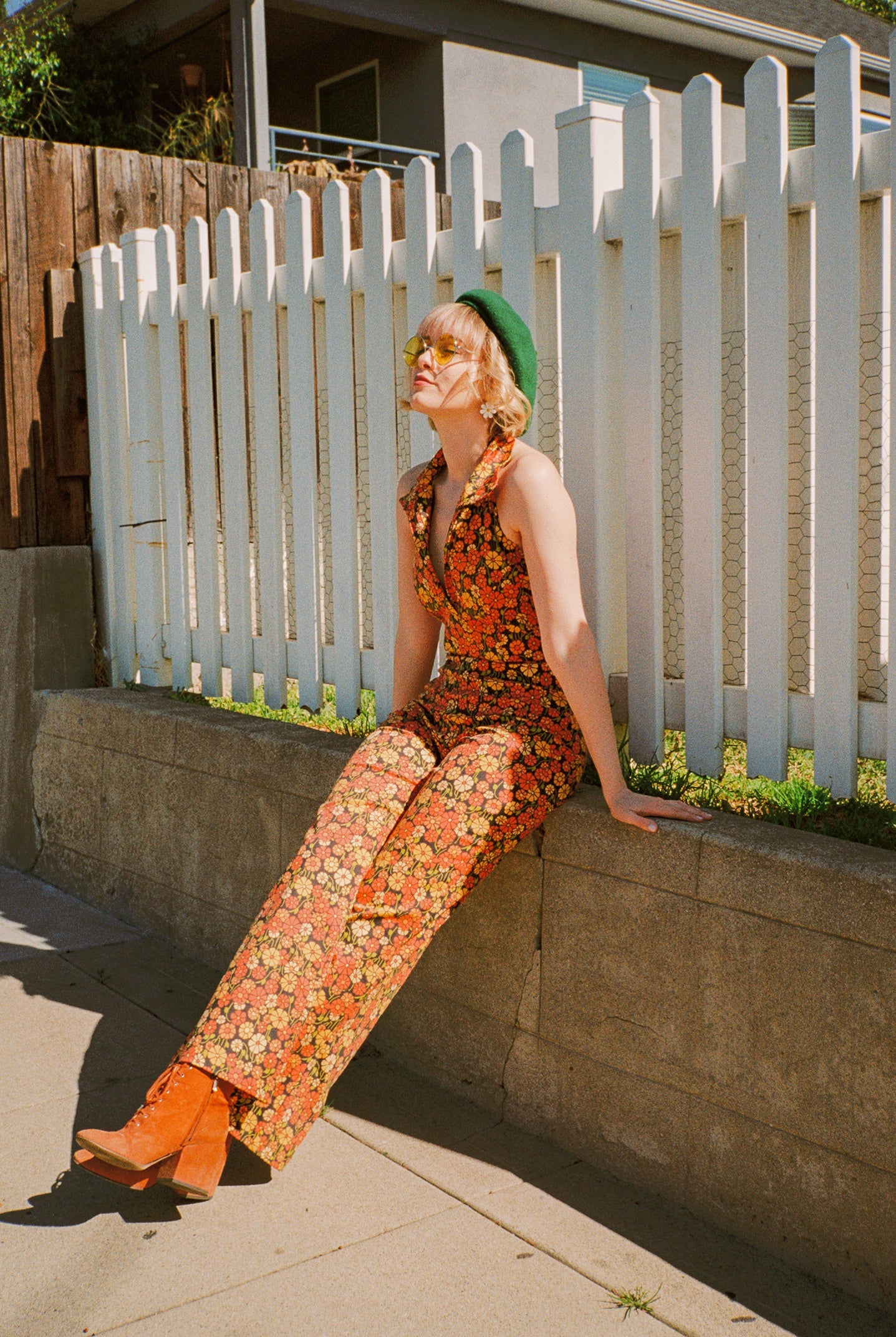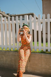 A foxy 70's summer dream! The Cecilia Jumpsuit is the ultimate vintage-inspired jumpsuit for summertime days! Its dreamy details include a halter-top and 70's collar neckline. Our coveted Marigold print is sunshine personified and the open back will keep you feeling easy breezy. Be prepared for nonstop compliments, this is a customer favorite!