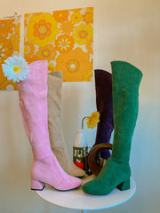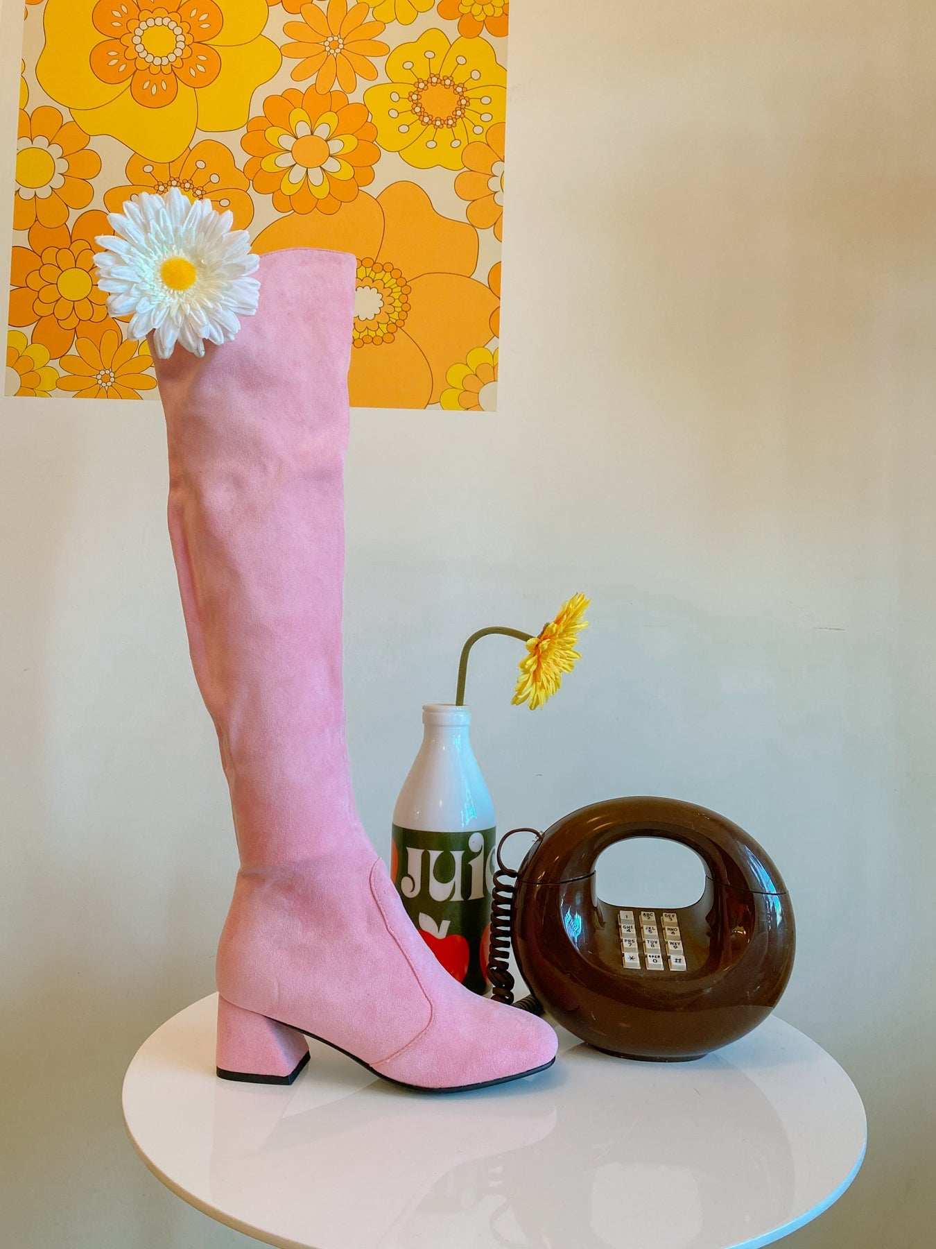 These boots were made for walkin’... Crafted with premium vegan suede making these weatherproof unlike genuine suede. Modeled after the vintage pairs from our personal collection inquired on for years. Ultra comfy with the perfect rounded toe and block heel. ✿