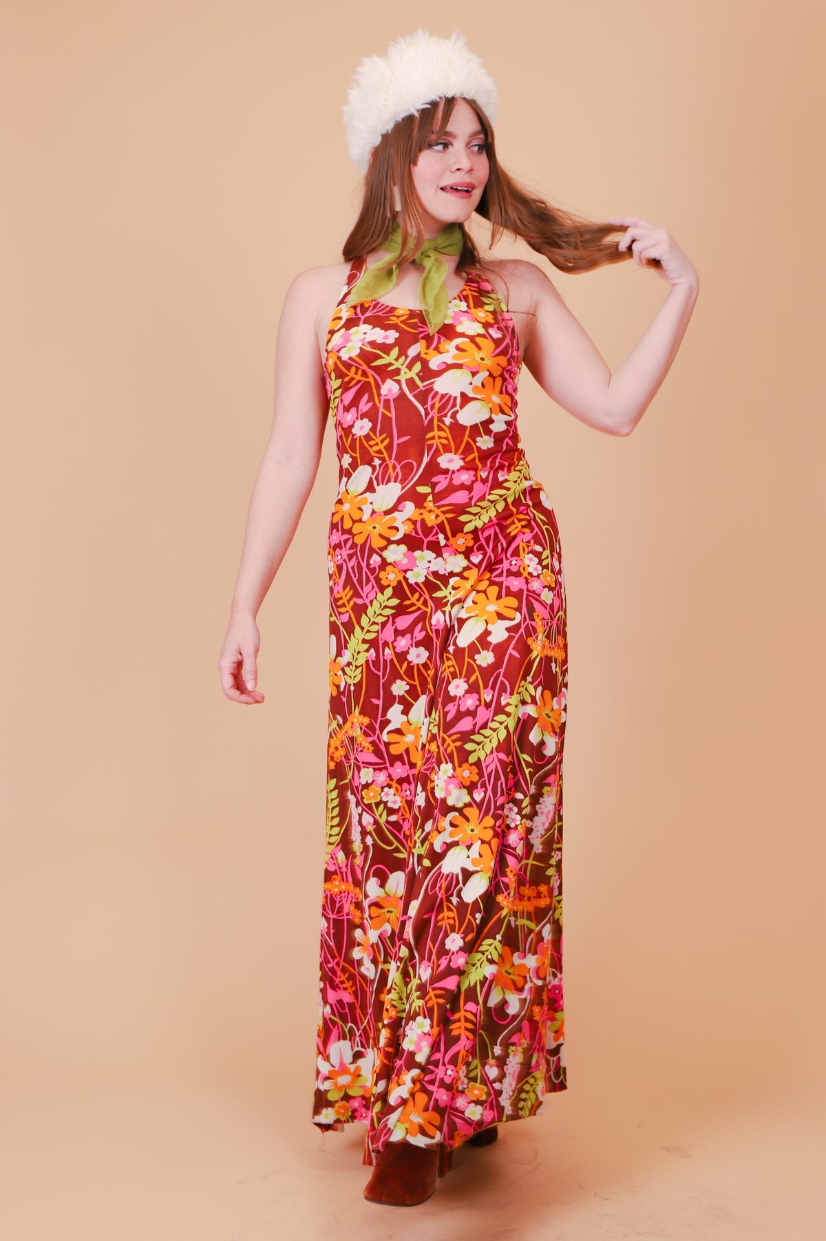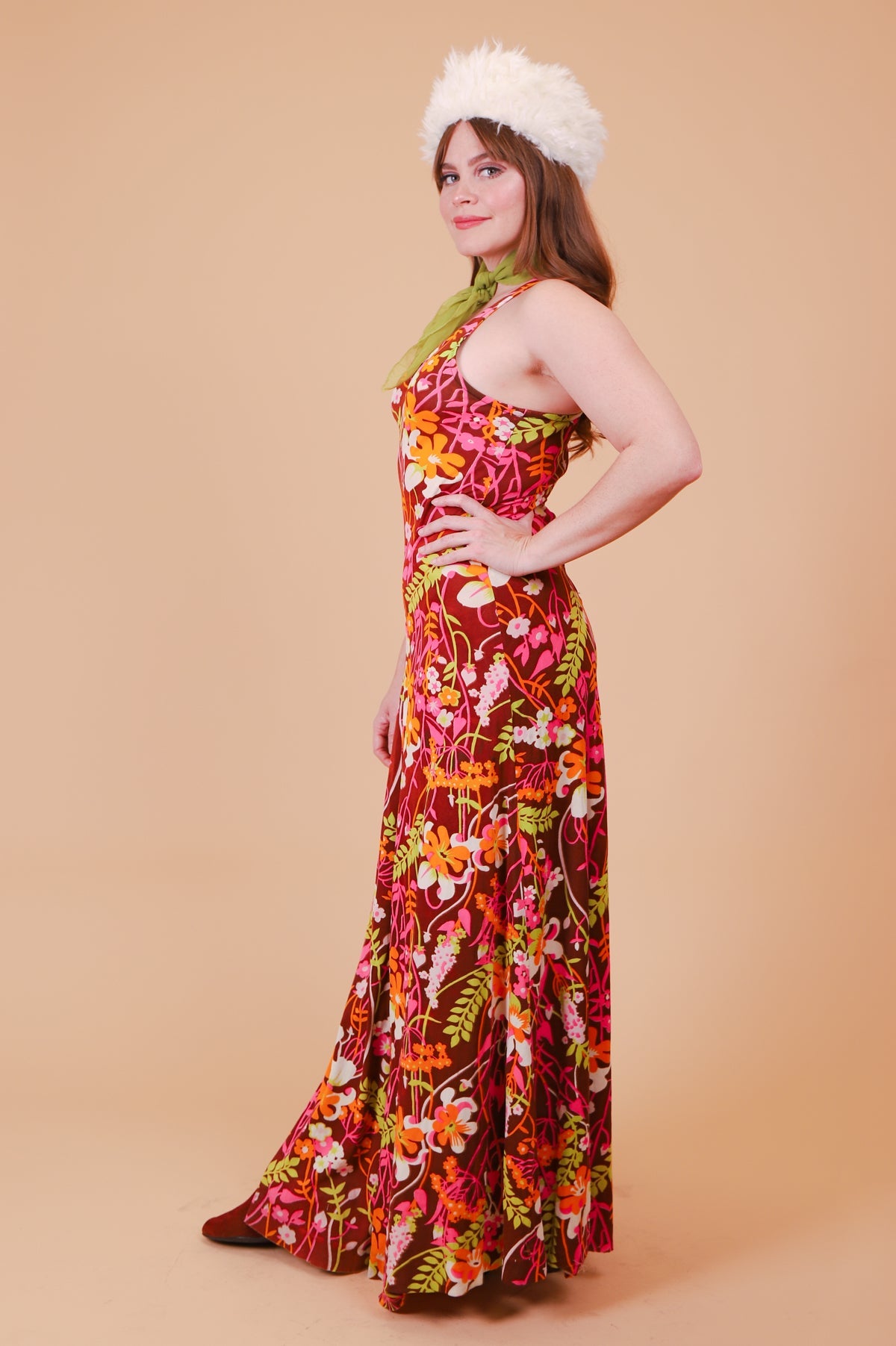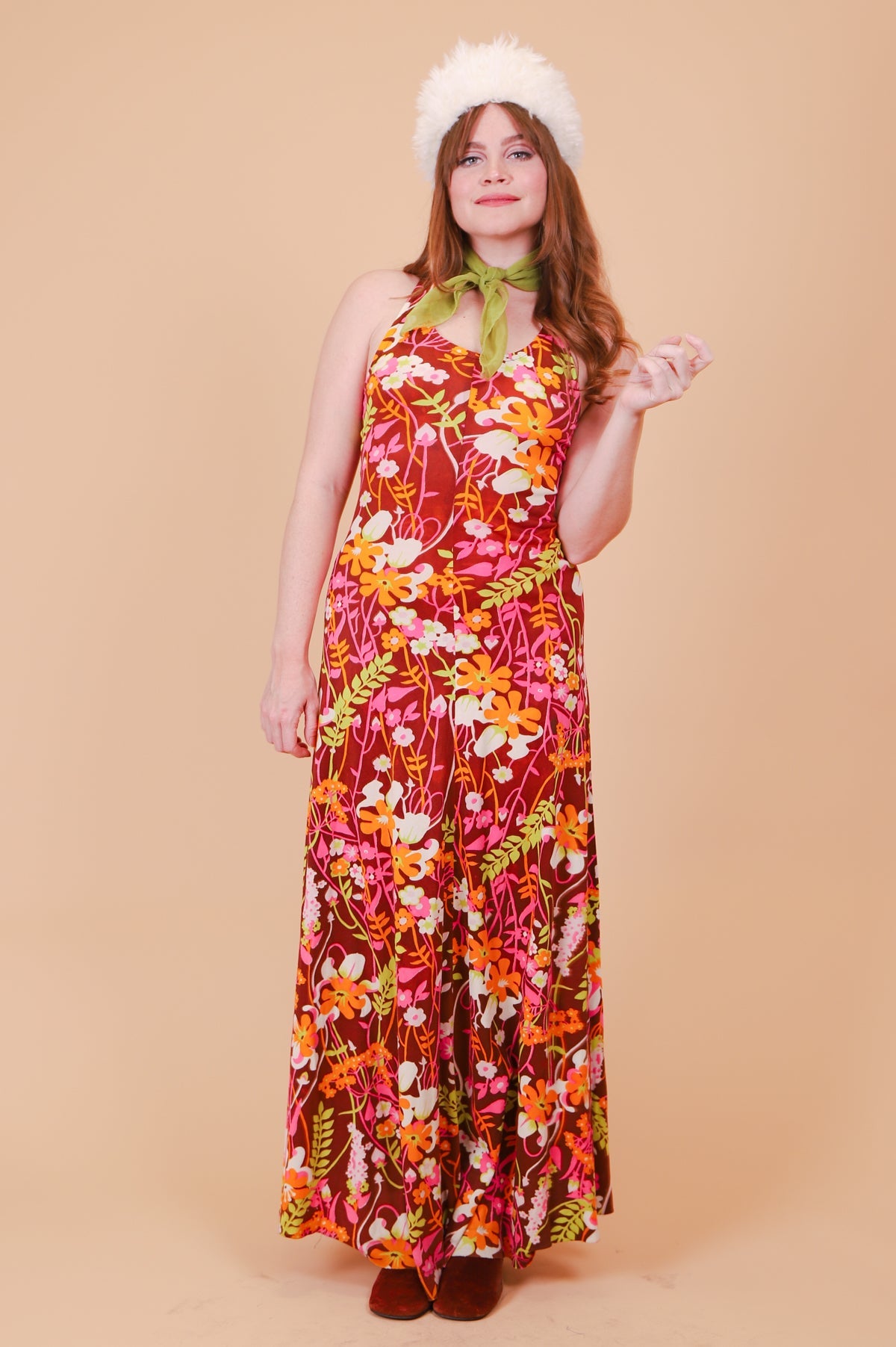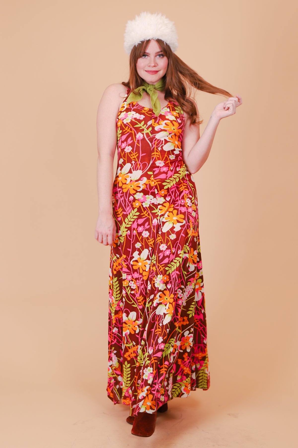 Vintage 1970’s Cinnamon Floral Garden Maxi-Dress